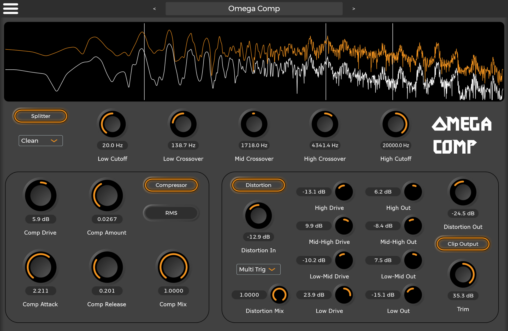 Omega Comp is the ultimate multiband dynamics sculptor, combining absurd power with intuitive controls. It unlocks a new world of sound design impossible to achieve with conventional compressors.